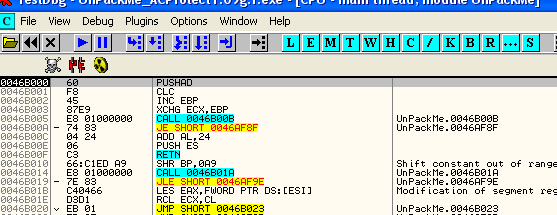 В предыдущей части мы сосредоточились на починке украденных байт, а сейчас нашей задачей является IAT. Снова открываем распакуй-меня в OllyDbg и доходим до фальшивой OEP с помощью скрипта.