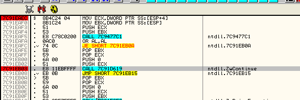 18. cmp eip, 7c91eb03