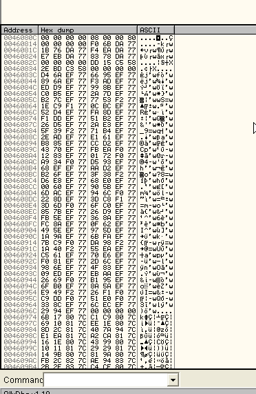 Это адрес API-функции, куда ведёт переадресация. Возвращаемся обратно в OllyDbg, и смотрим, найдём ли мы здесь что-нибудь.