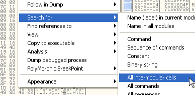 Ищем вызов API-функции, для чего можем использовать SEARCH FOR INTERMODULARS CALLS.
