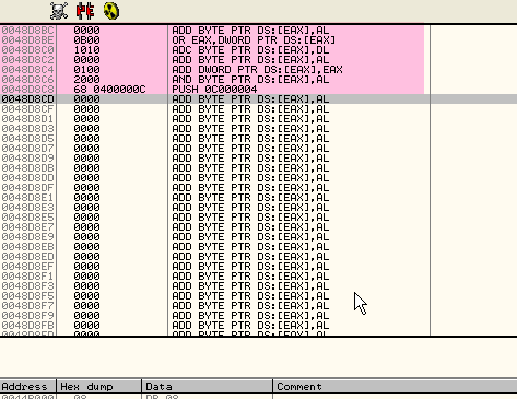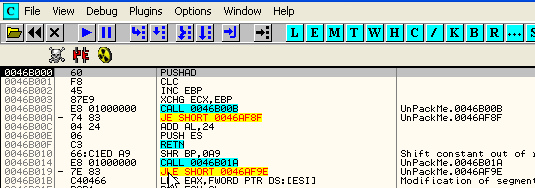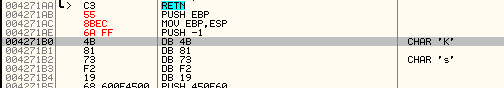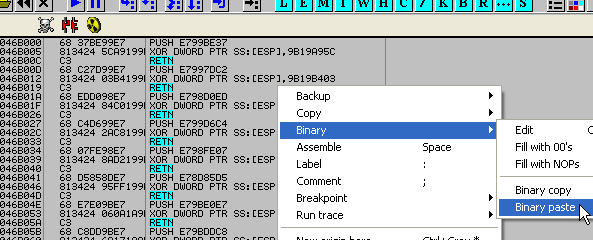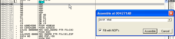 00485AF3 Main PUSH EBP 00485AF4 Main MOV EBP,ESP ; EBP=0012FFC0 00485AF6 Main PUSH -1Вот украденные байты, которые мы можем ввести с помощью функции «Assemble».