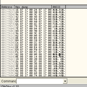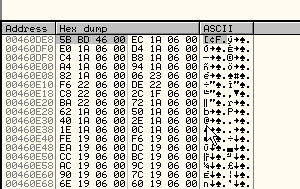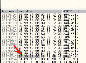 Байты начинают выполняться с 178256 – это первый элемент таблицы, а последний заканчивается в 1799ba.