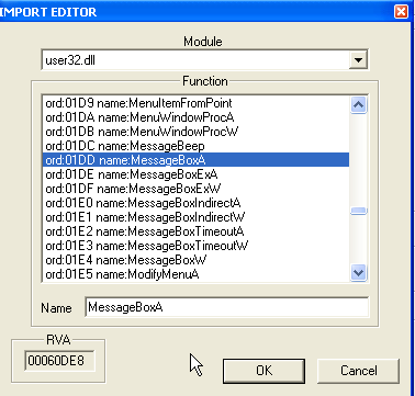 Делаем двойной щелчок по неправильному элементу и меняем его на MessageBoxA.