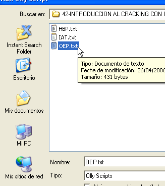 Запускаем оригинальный файл в другом OllyDbg и доходим до OEP с помощью скрипта, стирая старые HBP и устанавливая два необходимых BP.