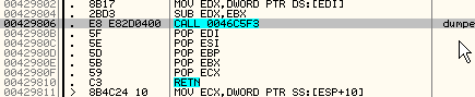 Видим введённые байты, которых ровно пять, так что теперь считаем: 4271b5 (фальшивая OEP) минус пять байт дают нам правильный OEP, то есть 4271b0.