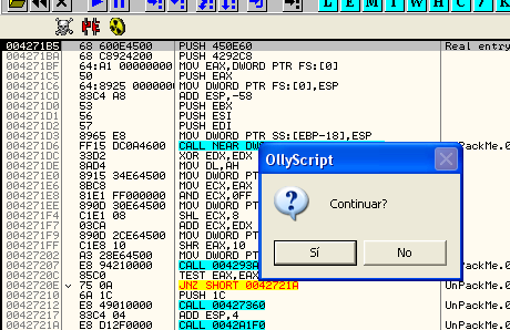 Теперь используем скрипт для OEP и тут же попадаем в него.