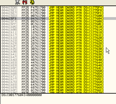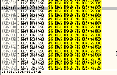 Хе-хе, таблица косвенных переходов, которая приводит к появлению ошибки, так как секции памяти, в которой находится 177658 и следующие адреса, нет в дампе и создаётся упаковщиком во время распаковки оригинального кода, так что нам осталось решить эту проблему, которая является одним из многих противоотладочных методов.