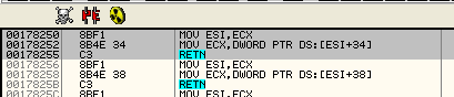 Тут оказываемся в OEP с помощью соответствующего скрипта и устанавливаем BPM ON ACCESS на элементе IAT, относительно которого хотим узнать, к какой API-функции он ведёт, для чего останавливаемся, чтобы получить к нему доступ.