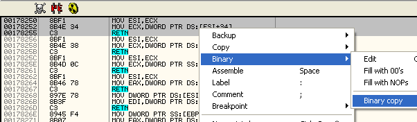 Так что копируем с помощью BINARY COPY всю область с нужными нам байтами и заменяем переходы с помощью BYNARY PASTE.