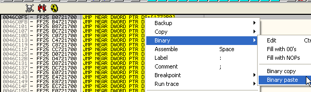 Возвращаемся к переходу и делаем BINARY PASTE.