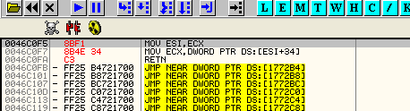 Поскольку переходы идут друг за другом и размер выполняемых команд всегда равен шести байтам, то мы можем скопировать сюда всю секцию, чтобы заменить переходы собственно тем, что должно выполняться.