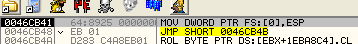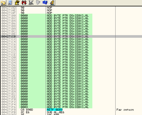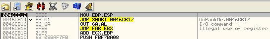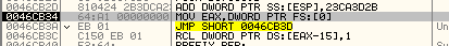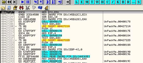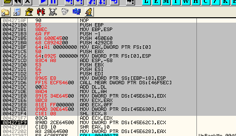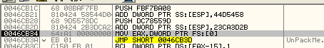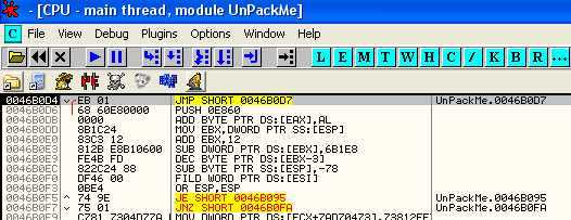 Первая остановка произошла здесь, но данная инструкция скорее всего принадлежит распаковщику. Нажмем F9 еще раз: