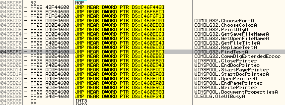 Поиск ничего не дает, но если подняться еще выше, то станет ясно, что это всё-таки часть IAT’а. Таким образом, в PeSpin используется и переадресация.