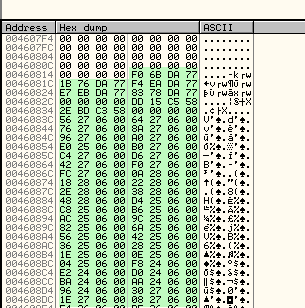 Начало IAT’а находится по адресу 460818. Мы еще вернемся к этому месту, когда будем исправлять IAT, а сейчас займемся возвращением украденных байтов; чуть выше ложной OEP для них как раз есть подходящая нулевая область: