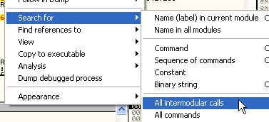 Кроме того, если сделаем Search for –> All intermodular calls, то найдем очень мало вызовов API-функций: