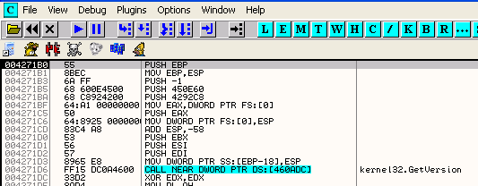 Это OEP, но при попытке запустить скрипт Hiei выдается сообщение, что установленная версия OllyScript устарела и ее надо обновить, поэтому пришлось искать новую, которая теперь называется ODbgScript. Этот проект продолжает развивать Epsylon, так как его первый автор SHaG больше им не занимается.