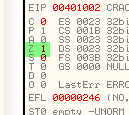 Видим, что активен флаг Z, то есть знаем, что результатом операции AND был НОЛЬ, в виду чего он и активировался.
