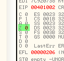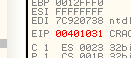 Совершается переход и EIP становится равным 401031.