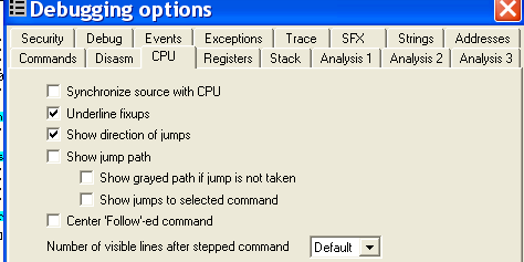Если зайдём в OPTIONS-DEBUGGING OPTIONS: