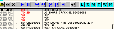 Видим, что действительно перехода не произошло, и выполнение программы продолжается в 401004. Примерно таким образом совершаются сравнения во всех программах.