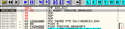 Видим, что EAX ниже чем ECX, то есть должен сработать переход. Нажимем F7: