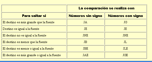 Как видно из таблицы выше, этот переход выполняется, если результат сравнения отрицателен, то есть если в предыдущем примере EAX меньше чем ECX.