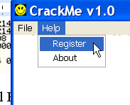 Приложение ещё не выполнило код, на который мы поставили точку останова. В окне крэкми вызовите меню и выберите опцию "Help" - "Register".