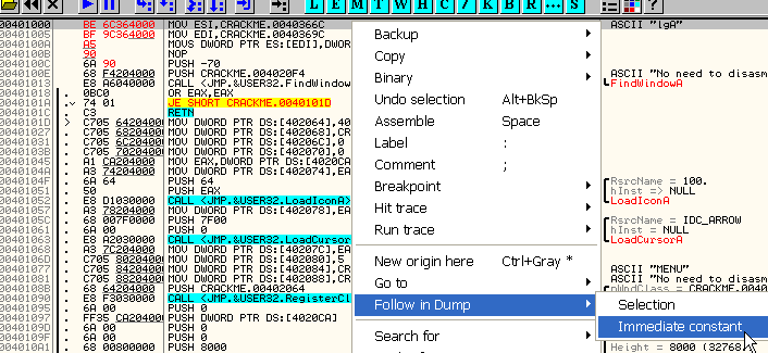 Подсвечиваем первую строчку (401000) - осуществляем правый клик мышью - New origin here. Теперь мы готовы опробовать наш новый цикл, использующий инструкцию LOOP.