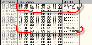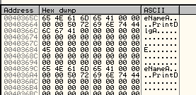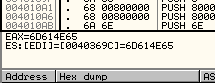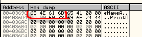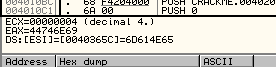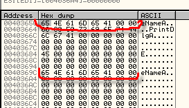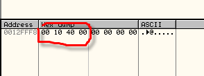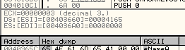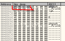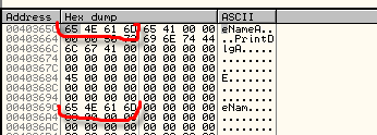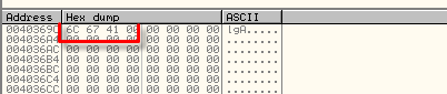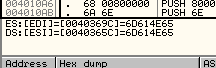 От предыдущих примеров по адресам 40365C и 40369C осталось то, что видим в дампе.