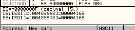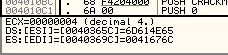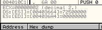 Вот и следующие 4 байта были удачно перемещены и счётчик ECX уже равен 2.