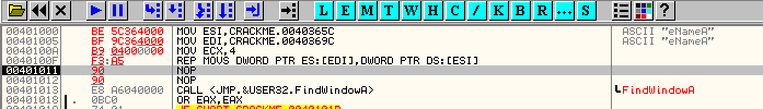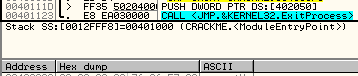 Чтобы было нагляднее, давайте снова воспользуемся крэкми Cruehead'а. Загружаем его в отладчик.