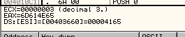 Если кому-то лень посмотреть на значение ESI на панели регистров, OllyDbg заботливо дублирует его в окне подсказок.