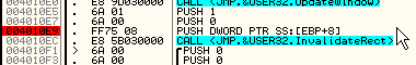 MOV dword ptr [eax], ecx CALL EAX JMP [ebx + 4]Чтобы узнать настоящий адрес в любой из предыдущих инструкций, необходимо остановить отладчик на нужной инструкции и посмотреть значения регистров или, что гораздо удобнее, посмотреть в окно подсказки.