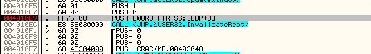Т.к. мы всё ещё находимся на точке входа (Entry Point), мы не можем заранее узнать значение регистра EBP к моменту выполнения того самого PUSH'а. Поэтому, нам не известно пока ещё что именно попадёт в стек. Давайте выделим данный PUSH (он находится по адресу 401009) и нажмём F2, чтобы повесить на него точку останова (бряк).
