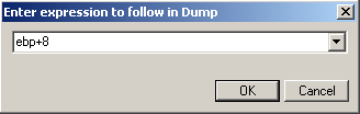 Теперь давайте посмотрим, что хранится в дампе по адресу EBP+8 : Go to - Expression = EBP+8
