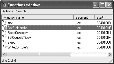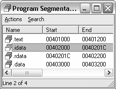 Как вы уже, должно быть, догадались, это окошко показывает нам, из каких секций состоит дизассемблированная программа.